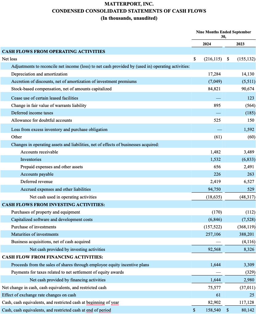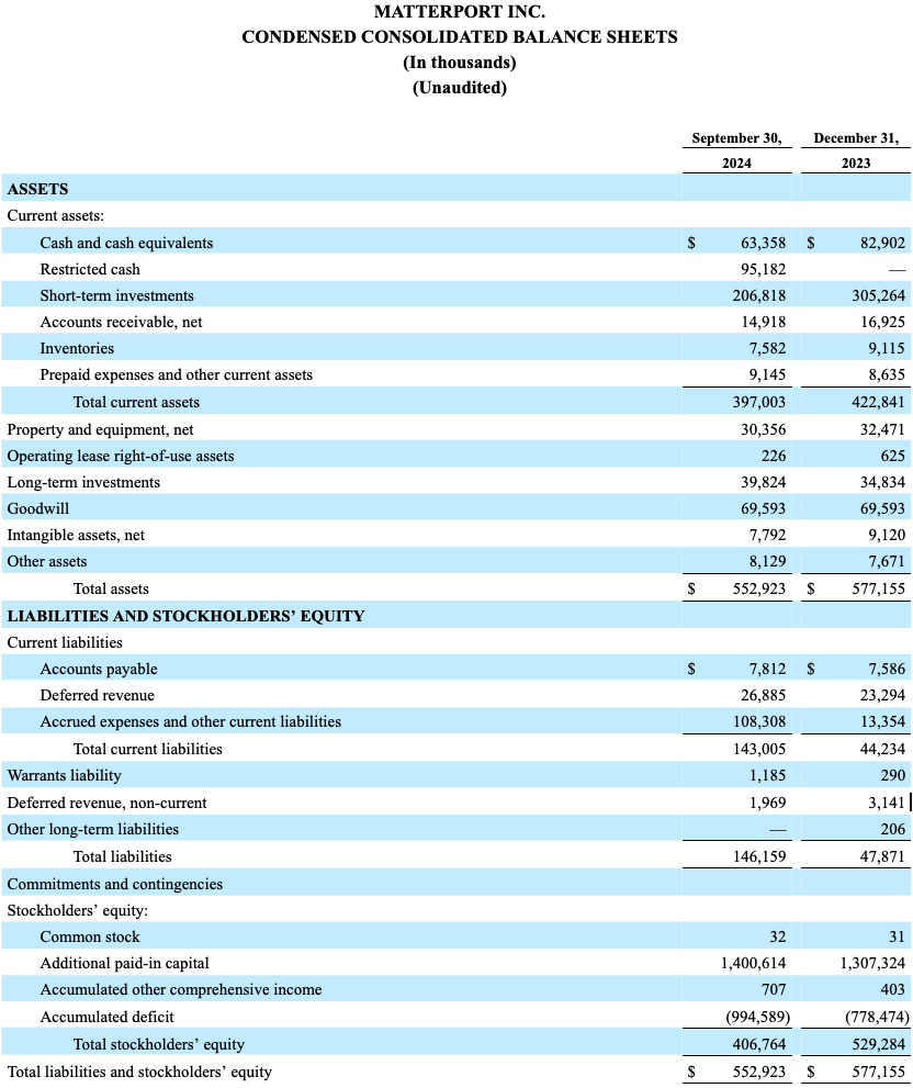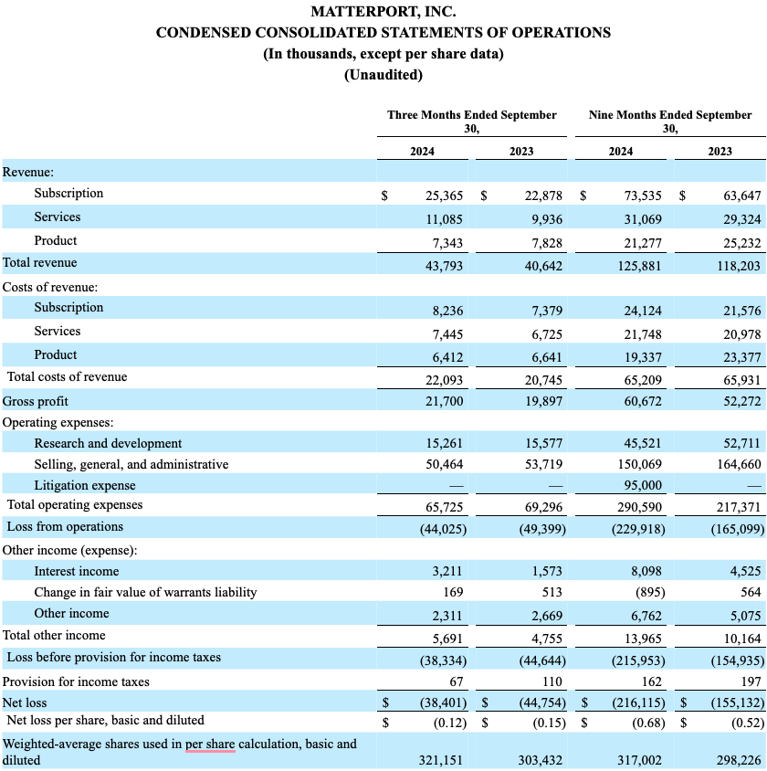 SUNNYVALE, Calif. — Matterport, Inc. (Nasdaq: MTTR) (“Matterport” or the “Company”), the leading spatial data company driving the digital transformation of the built world, today announced financial results for the quarter ended September 30, 2024.