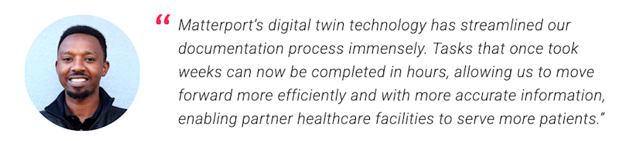 Matterport’s contributions go beyond project efficiency to create meaningful social impact. By partnering with organizations to develop innovative solutions, we help tackle some of society's biggest challenges and support resilience by providing equitable access to critical facilities. Through reducing rework, minimizing travel for site visits, and enabling better healthcare infrastructure in underserved regions, Matterport empowers organizations like BHI to efficiently allocate resources toward their mission and maximize impact. These efficiency gains align with Matterport’s commitment to advancing equity and sustainability in vulnerable communities.