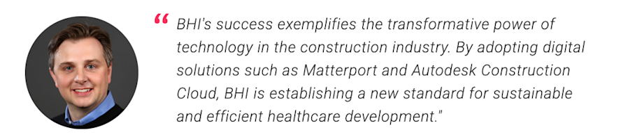 The implementation of Matterport and Autodesk Construction Cloud yielded significant improvements in efficiency, cost savings, and project sustainability for BHI. By using digital twins, BHI was able to reduce the time required for site documentation by over 25%, which translated to quicker project kick-offs and reduced disruption to operational healthcare facilities. The Connaught District Hospital, for instance, was scanned and documented in under three hours, allowing BHI to address critical medical planning issues without delaying hospital services.